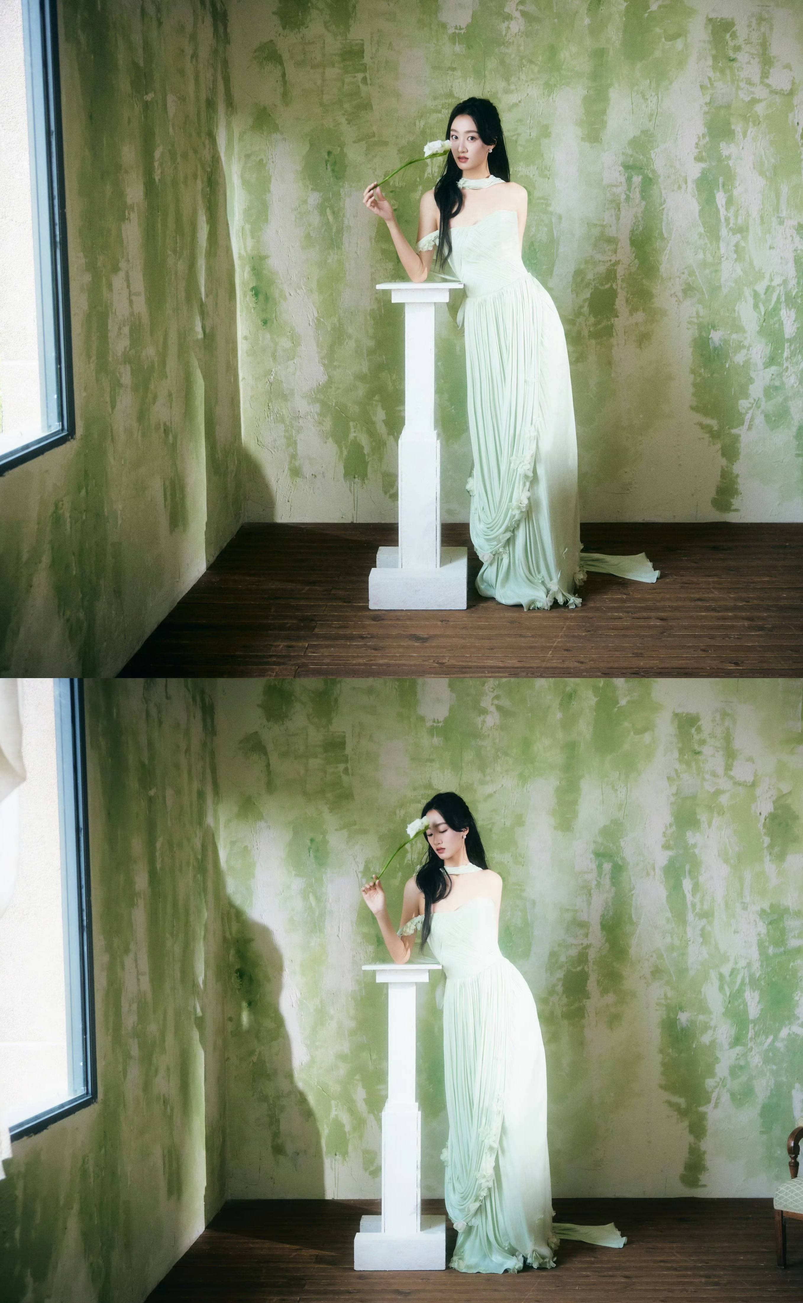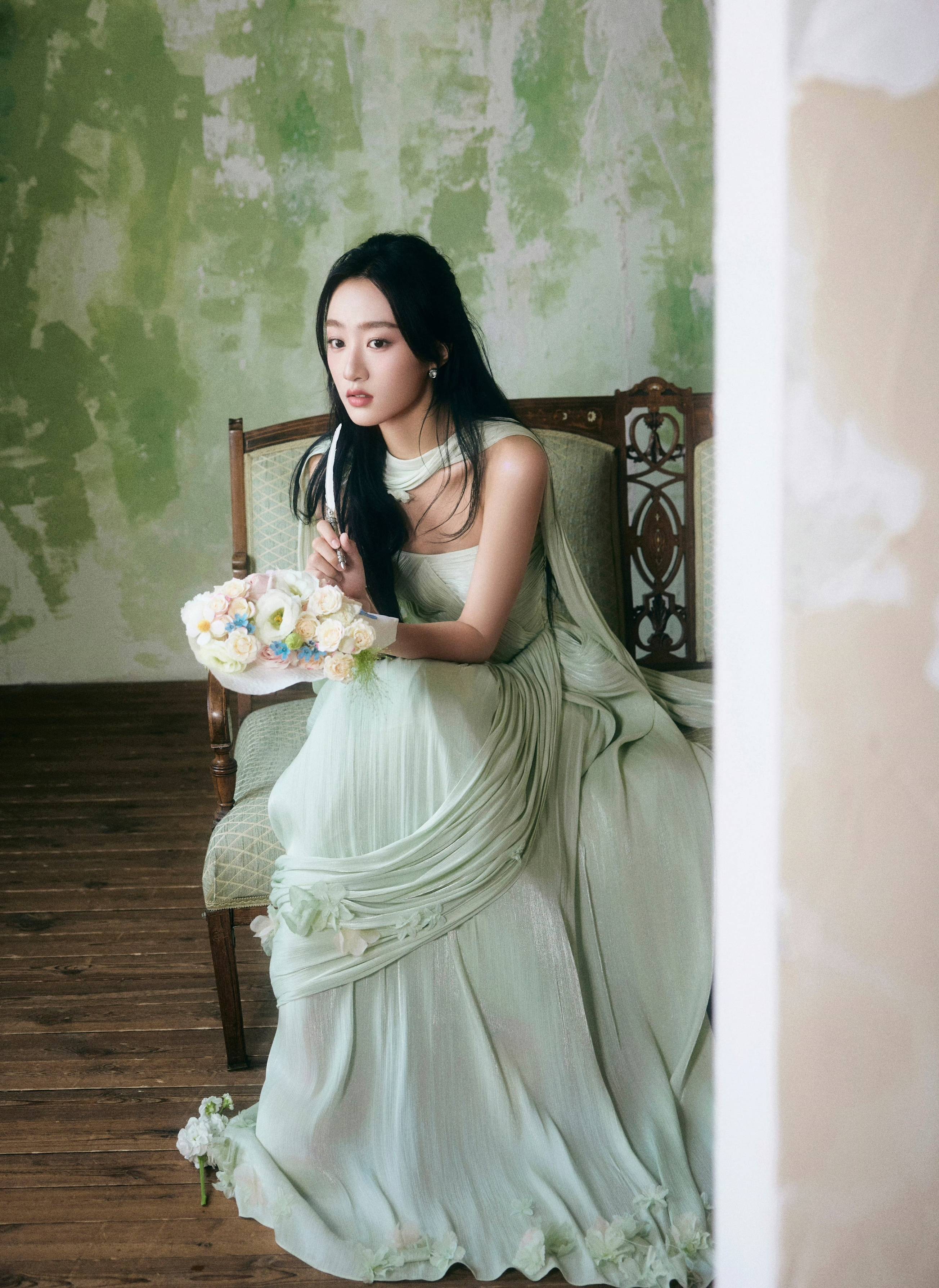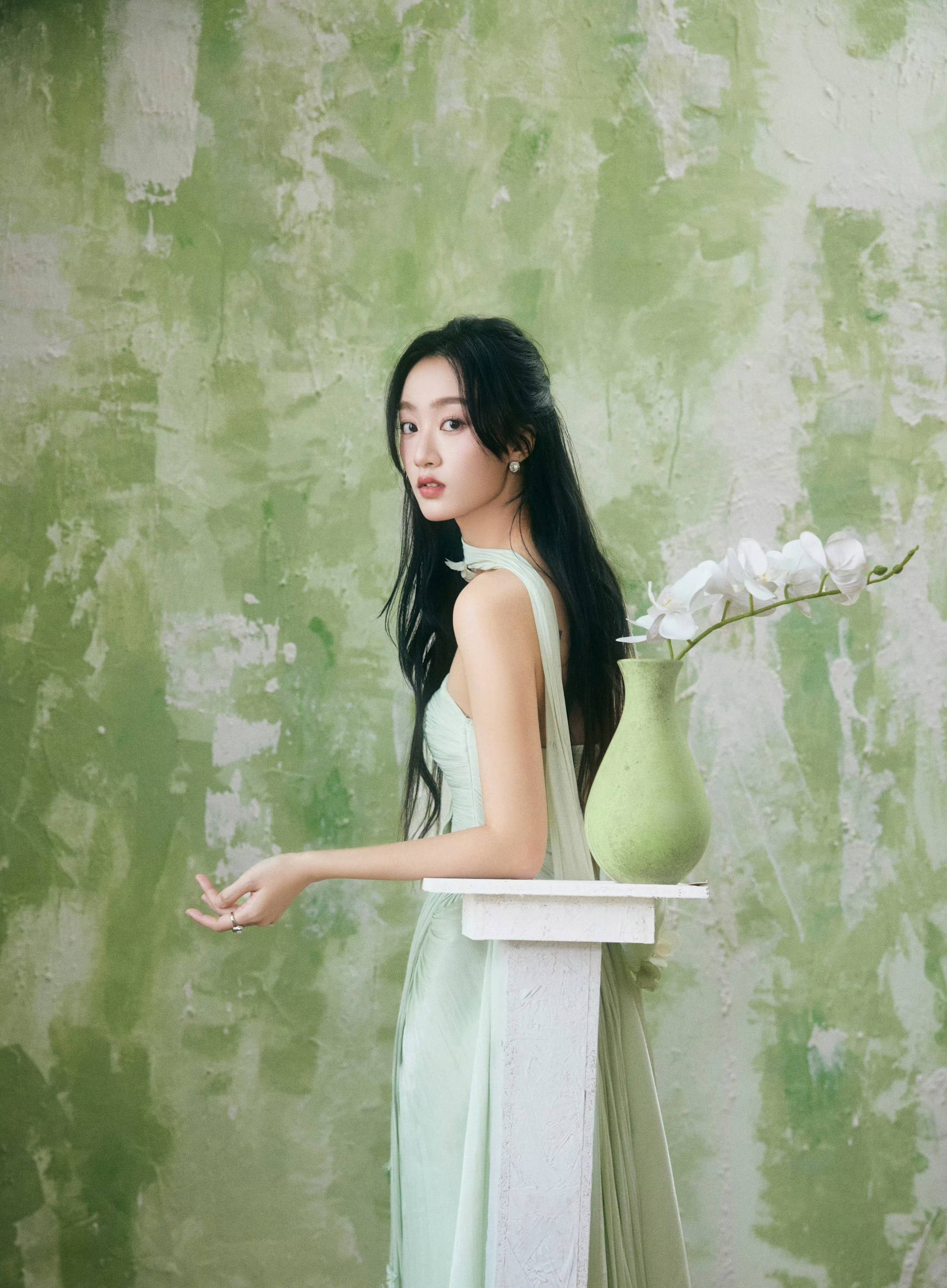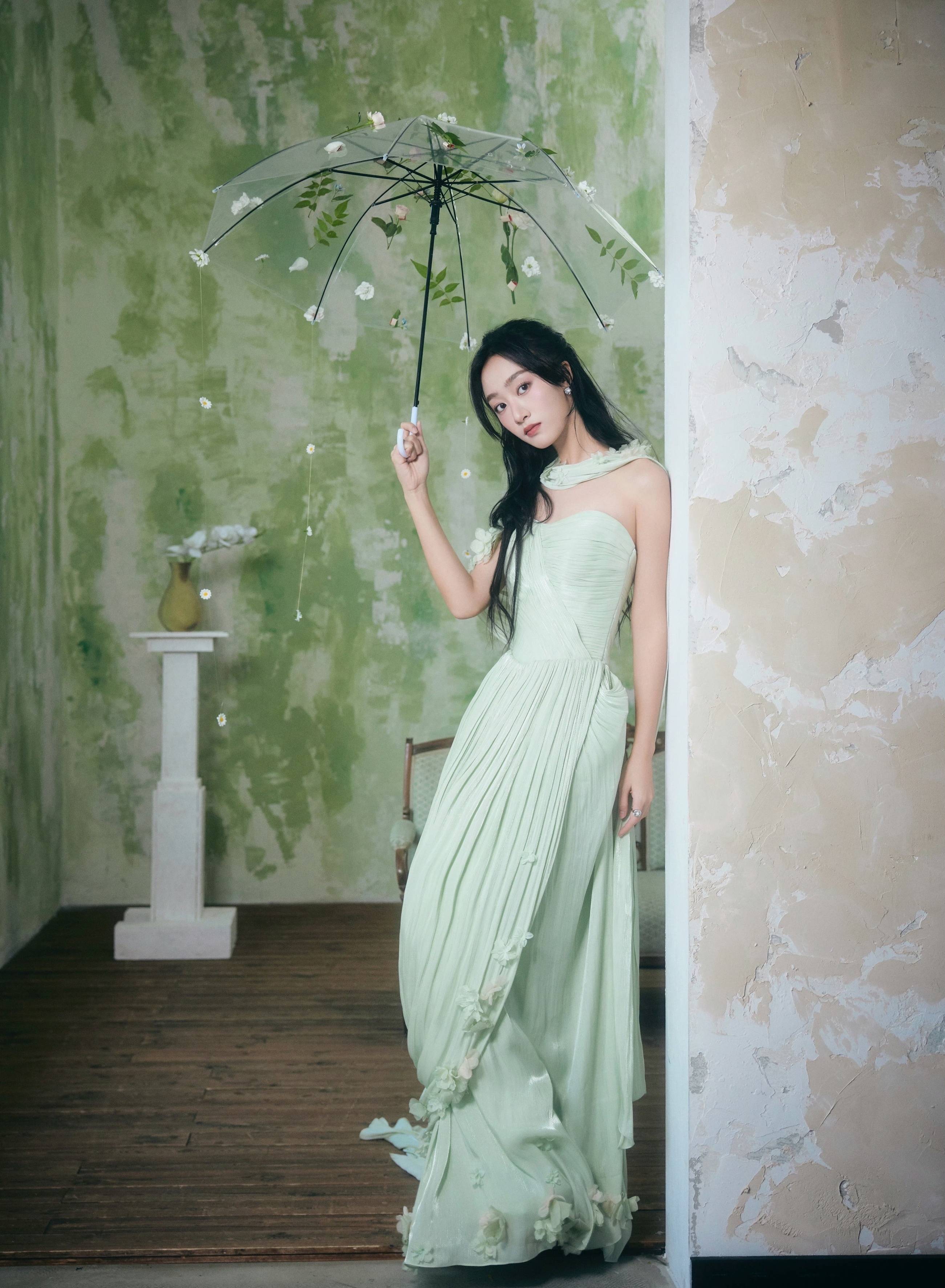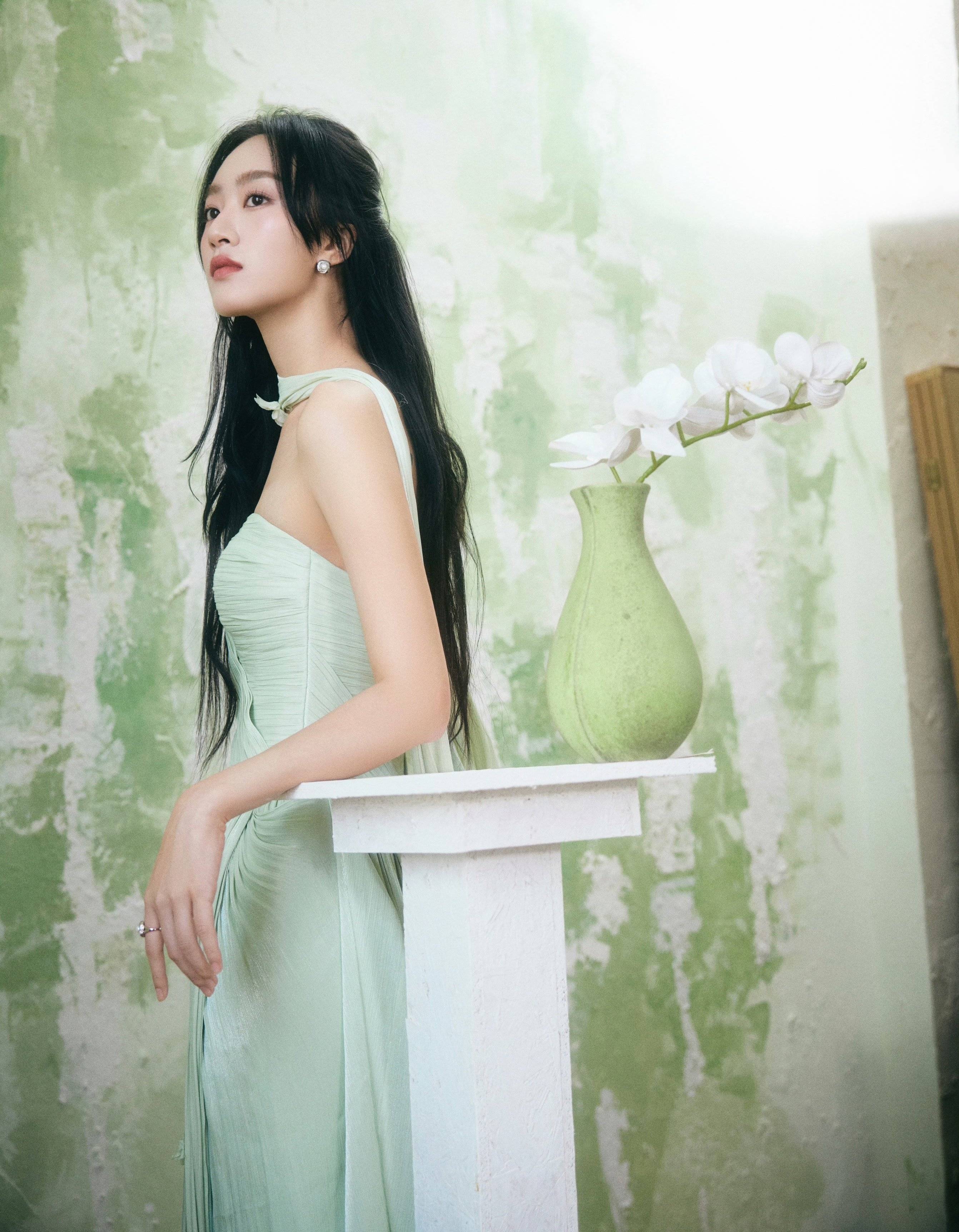 黄子琪 一抹薄荷绿,裹带着相沿的韵味与当然的崭新,织就出这零丁如梦似幻的造型。