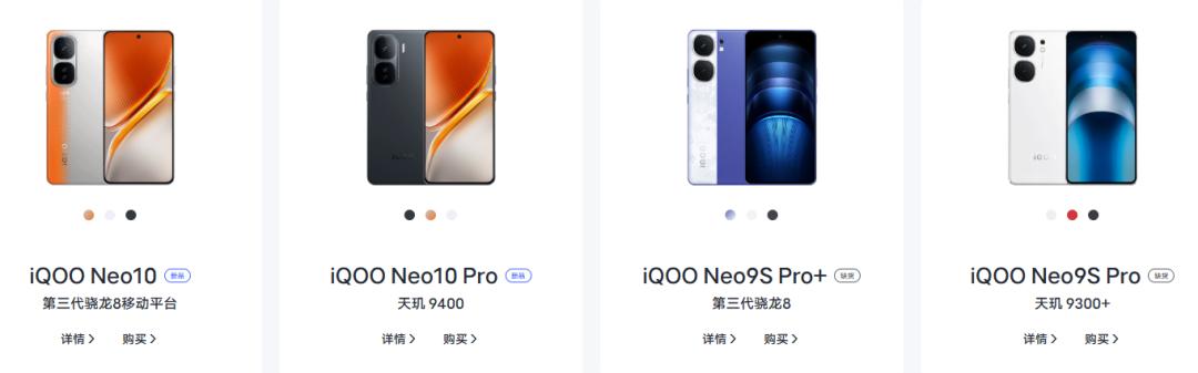 如果仅仅一两款型号差未几倒也无所谓,但目下为止,iQOO Neo9 系列的 4 款机型,加上 iQOO Neo10 系列的 3 款机型,再加上此次的 iQOO Neo11 ,其实依然有 8 台手机在用险些一样的外不雅了。。。